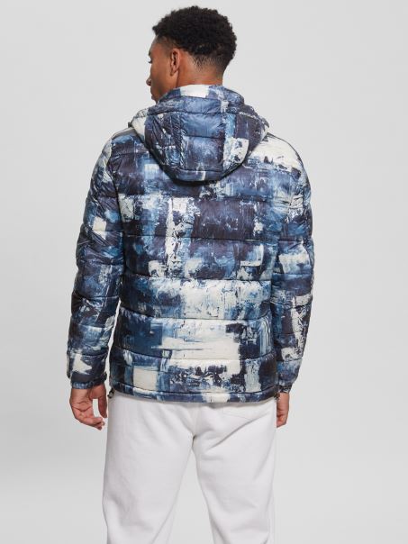 Jachetă Puf Ultra-ușoară Eco, Vopsea Albastră Aop Print Guess