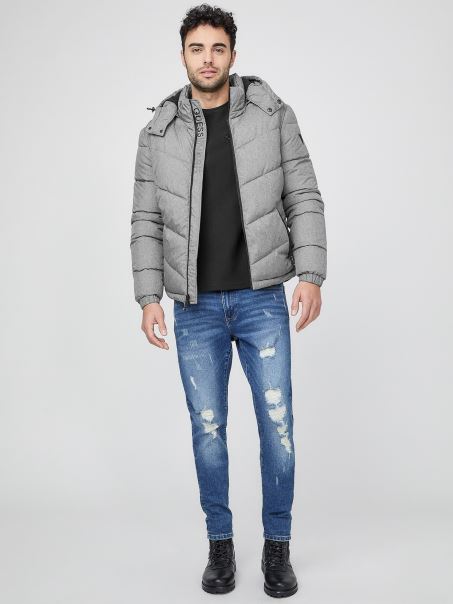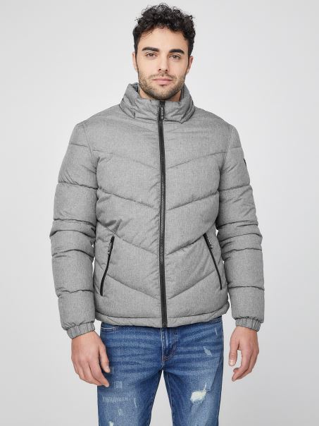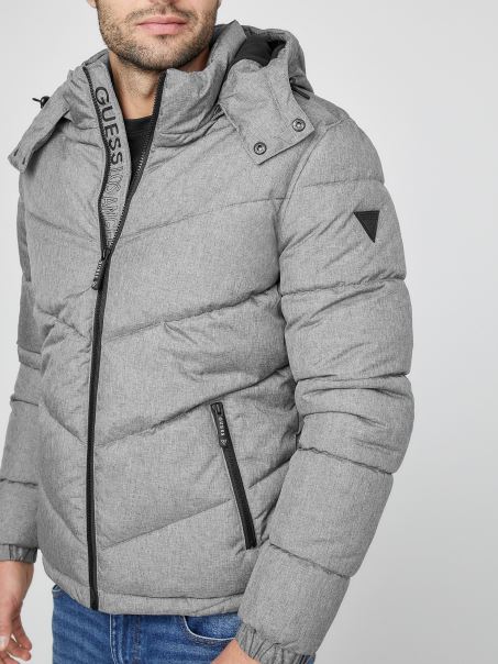 Jachetă Puffer Chase Gri Melange Deschis Guess
