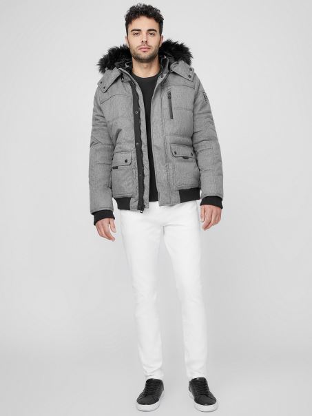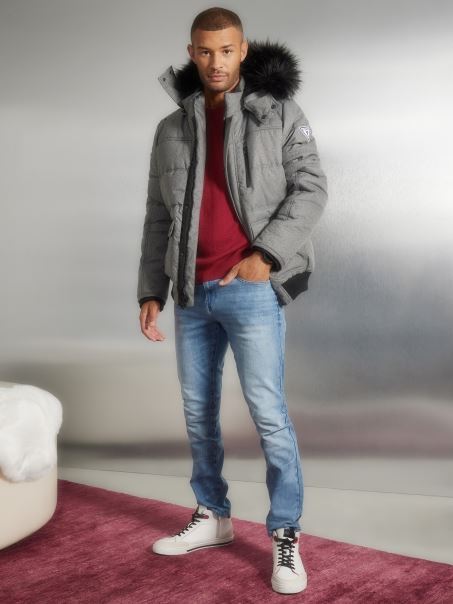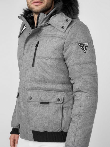 Jachetă Puffer Duncan Gri Melange Deschis Guess