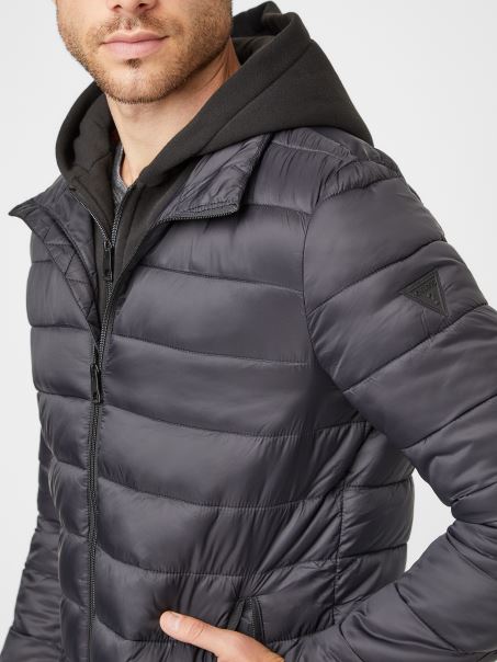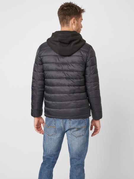 îmbunătățește-ți Jacheta De Zi Cu Zi Cu Această Jachetă Puf Mulat, Cu O Inserție De Jerseu Detașabilă, Cu Glugă Atașată și Plasture Cu Logo Pe Mâneca Stângă. Buzunare Laterale și închidere Cu Fermoar în Față.