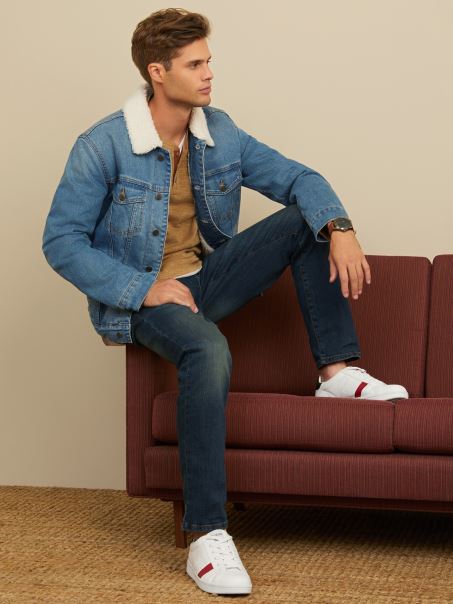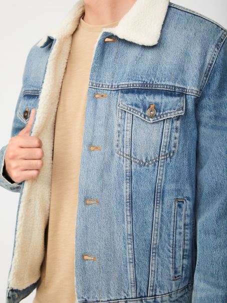 Jachetă Din Denim Cu Căptușeală în Sherpa, Buzunare Frontale și închidere Cu Nasturi în Față.