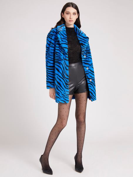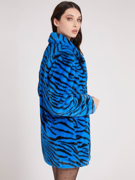 Geaca Animalier Blana Artificiala Albastra Multi Guess