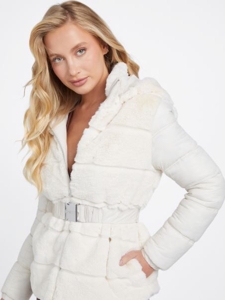Blush Vanilie Jachetă Guess Mailene Din Blană Artificială