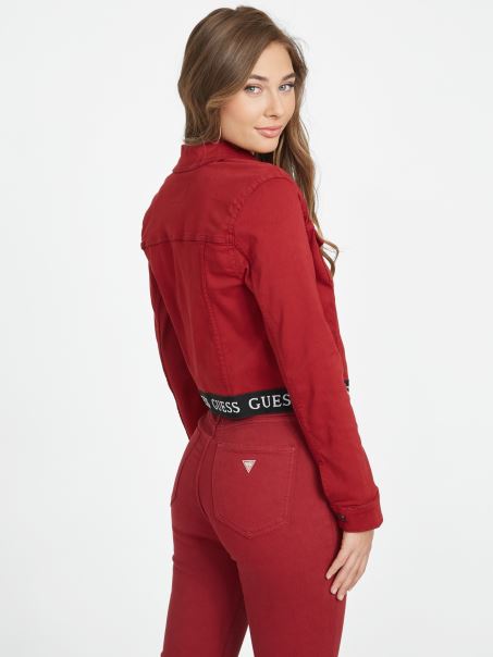 This Jachetă Denim Vopsită Tăiată Prezintă O Bordură Elastică Cu Logo La Tiv, Cu Un Guler Clasic Pliat, închidere Cu Nasturi în Față și Buzunare Cu Clapă.