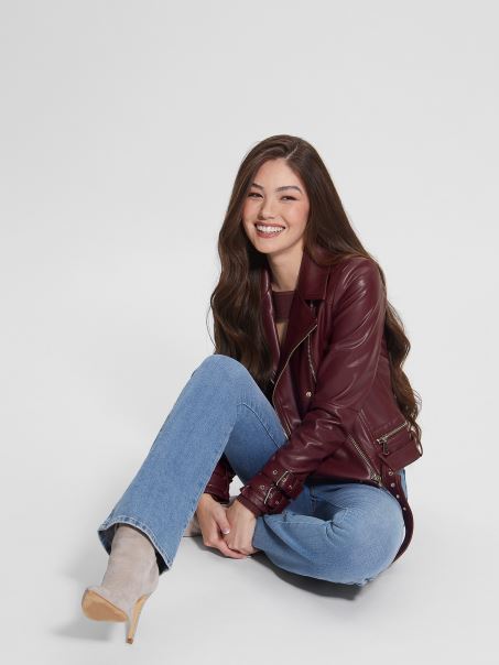 Geacă Moto Din Piele Artificială Olivia Guess Mystic Wine Multi