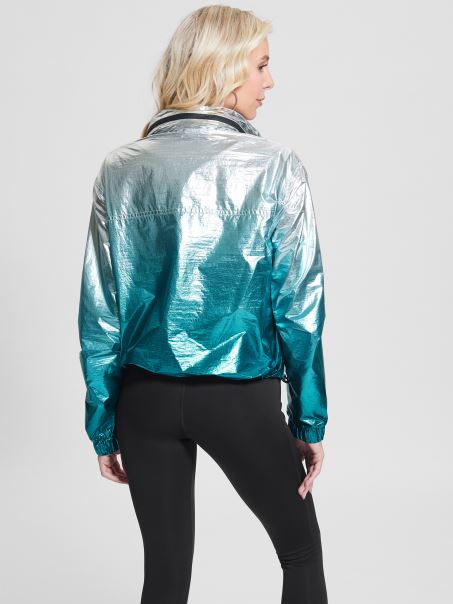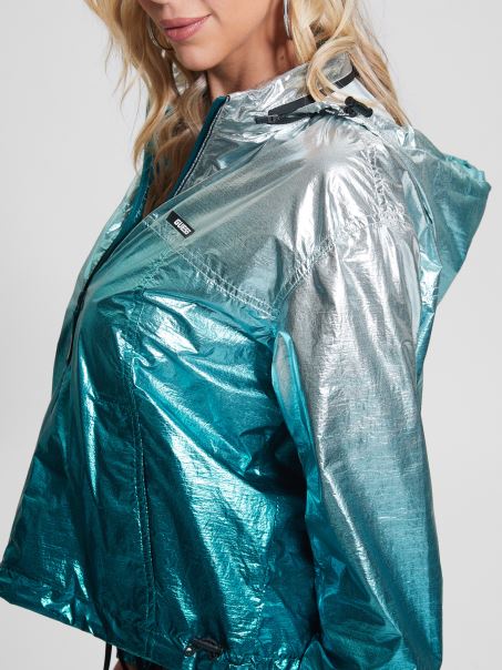 Păstrează-ți Răcoarea Cu Această Jachetă De Vânt Ușoară, Cu Un Design Ombrᄄᆭ, închidere Cu Fermoar în Față, Glugă Detașabilă și Tiv Decupat.