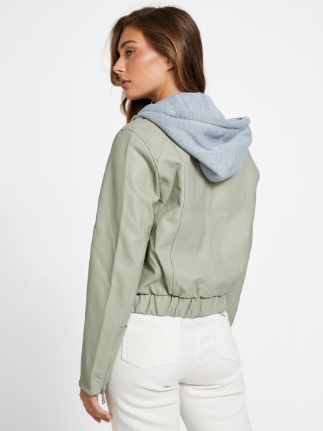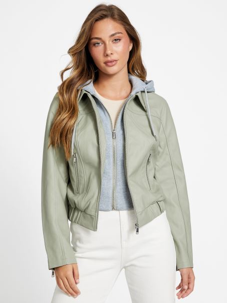 Jachetă Cu Glugă Din Piele Artificială Guess Balsam Verde