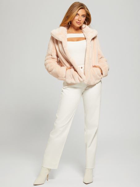 Jachetă Din Blană Artificială Almond Sophy Netedă Guess