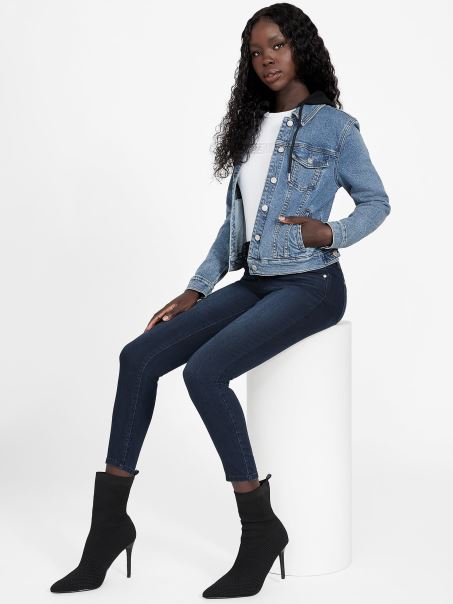 Stratificați-vă Garderoba Cu Un Stil Atemporal. Jachetă Din Denim Cu Glugă, Cu Confecții Mixte, Glugă Cu șnur, Guler Pliat, Buzunare Laterale Duble și Buzunare Cu Nasturi La Piept. Conține Fibre De Bumbac Reciclate.