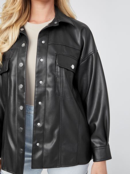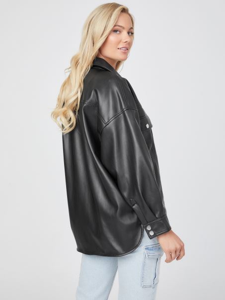 Jachetă Din Piele Artificială Negru Jet Guess