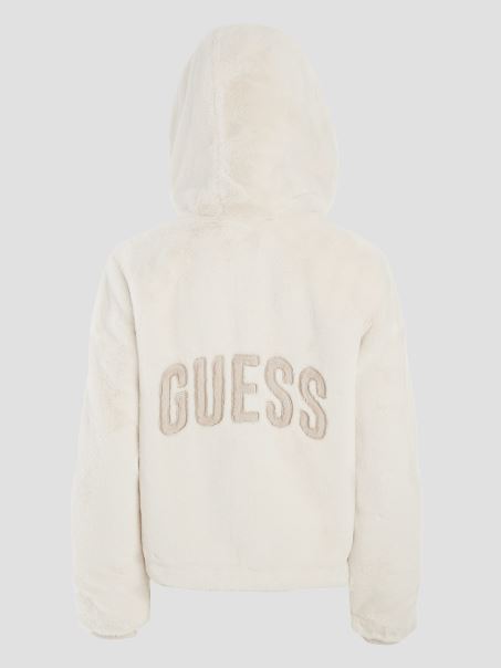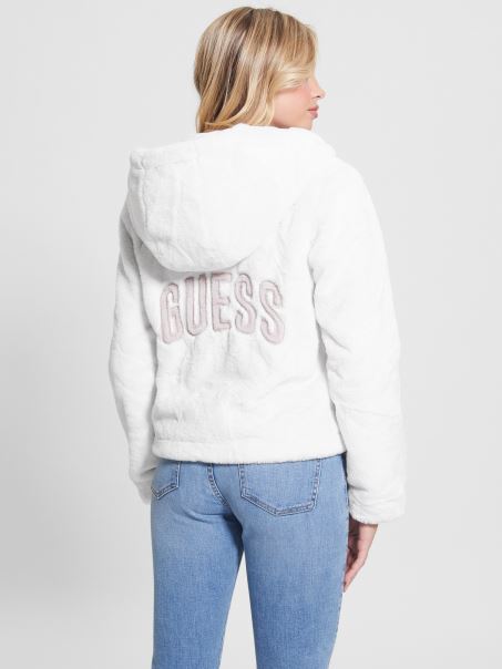 șic și Confortabil, Această Jachetă Din Blană Artificială Are O Glugă Atașată, închidere Cu Fermoar și Ilustrație Emblematică A Logo-ului Guess La Spate Pentru Un Finisaj Ultra-cool.