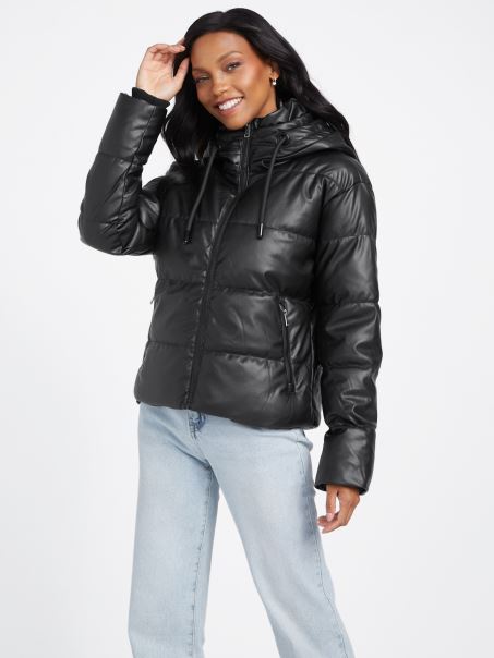 Jachetă Puff Din Imitație De Piele Vadley Negru Jet Guess