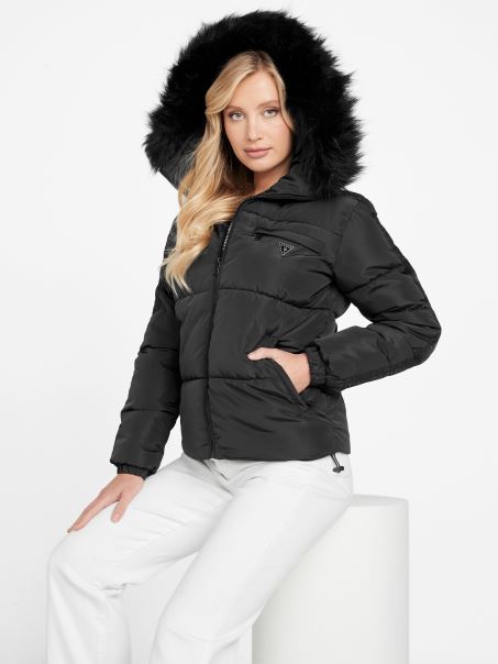 Veți Fi Gata Să înfruntați Frigul Cu This Jachetă Puf Concepută Cu O Glugă Atașată Cu Tuns Din Blană Artificială, Mai Multe Buzunare Frontale, O Pictogramă Cu Logo și închidere Cu Fermoar. Contine Plastic Reciclat.
