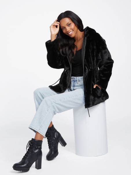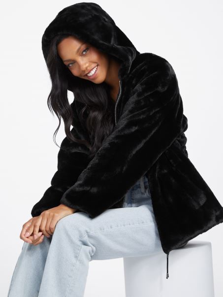 Două Priviri, O Bucată. This Jachetă Reversibilă Are Glugă, Buzunare, O Parte Din Blană Artificială Cu Talie Cu șnur, Precum și Un Revers Elegant.