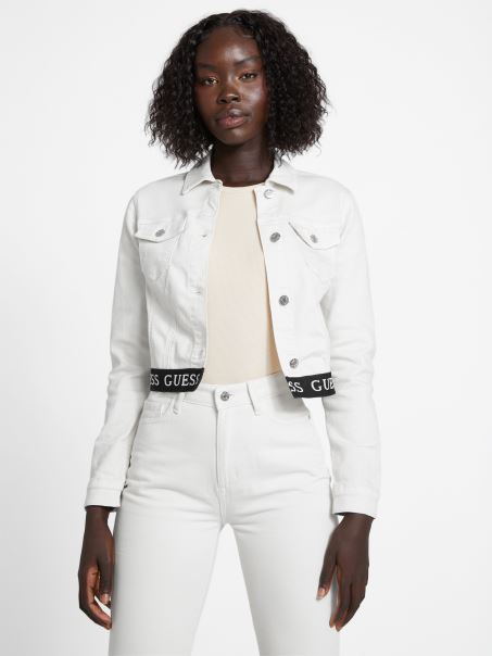 Jacheta Crop Cu Logo Camil Alb Munte Guess