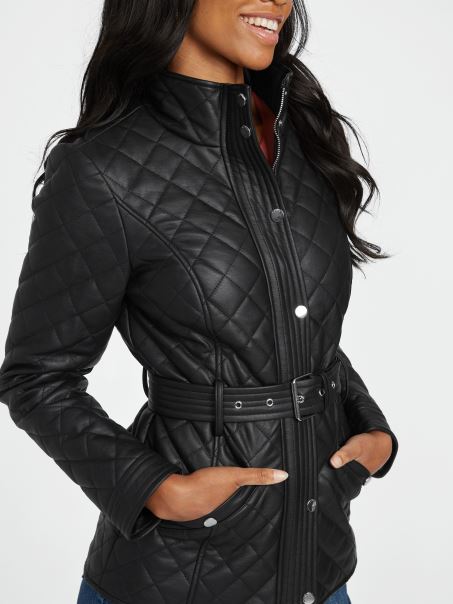 Jacheta Din Imitatie De Piele Danica Negru Jet Guess