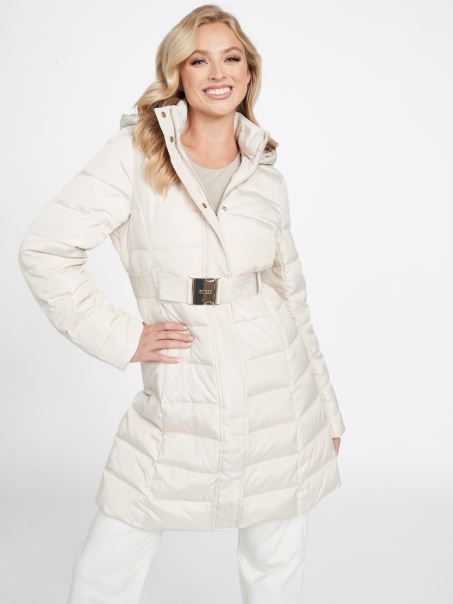 Echipată Cu Umplutură De Puf Autentică Pentru O Protecție Supremă împotriva Frigului, Aceasta Jachetă Puf Este Concepută într-o Siluetă Cu Paragate și Are O Glugă Atașată Cu Garnitură Detașabilă Din Blană Artificială. Cu O Curea Elastică Cu Bandă Cu Logo, Buzunare Laterale și închidere Frontală Cu Fermoar Cu Buton De Siguranță.
