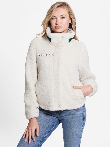 Geacă De Pluș De Pluș, Cu Panglică Pe Guler și Design Grafic Tricot La Spate. Închidere Cu Fermoar Ascuns în Față, Detaliu Cu Logo Brodat și Buzunare Laterale.