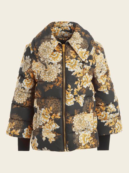 Păstrează Farmecul Cu Această Jachetă Puf Florală. Proiectat Cu O Construcție Matlasată, Guler Ajustabil, Manșete Cu Nervuri și închidere Cu Fermoar în Față.