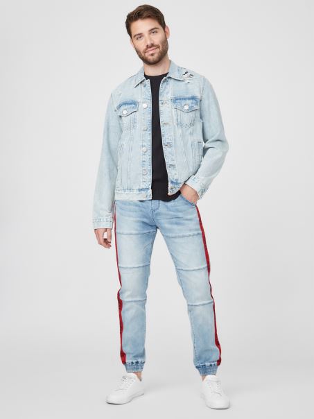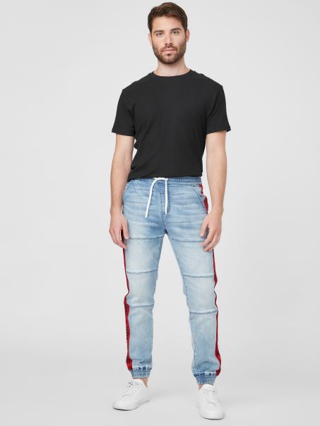 Confecționați Dintr-o Fabricație Din Denim Din Plastic Reciclat, Acești Pantaloni De Jogging Relaxați Au Cusături Moto, Bandă Cu Logo în Lateral și O Gleznă Conică. Talie Elastica Cu Snururi.