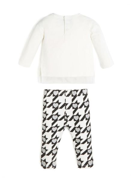 Se Va Simți încrezătoare în Acest Set Cu Un Top Cu Mâneci Lungi, Cu Text Brodat și Logo și Pantaloni Cu Imprimeu De Inimă.