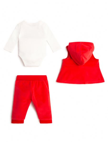 Un Ansamblu Ideal Pentru Vreme Rece, Acest Set Asortat Include Un Body Cu Mânecă Lungă, Cu Ursuleț și Biscuiți în Față și O Vestă Confortabilă Cu Glugă. Terminat De O Pereche De Pantaloni De Jogging Din Tricot Elastic.