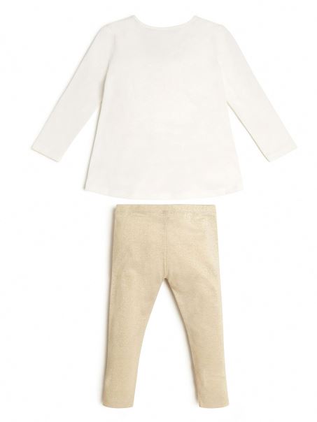 Ține-o Să Strălucească Toată Ziua în Acest Set Asortat, Care Vine Cu O Cămașă Cu Mânecă Lungă, Cu Un Logo Distractiv și Jambiere Metalice Asortate.