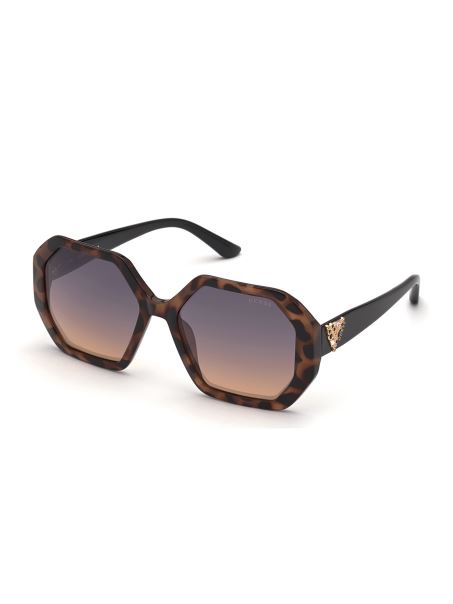 Completați-vă Aspectul Cu Această Pereche șic De Ochelari De Soare Supradimensionați, Cu Rame Geometrice Broaște țestoasă și O Emblemă Cu Logo Plină De Cristale Glam La Tâmple.