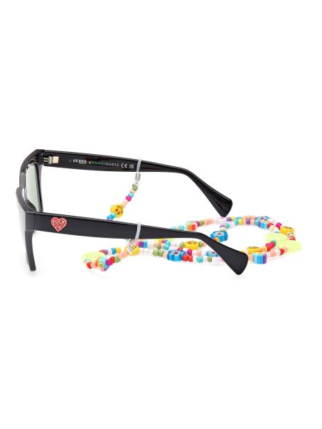 temple: Temple Din Plastic Negru, Sigla Guess în Formă De Inimă.