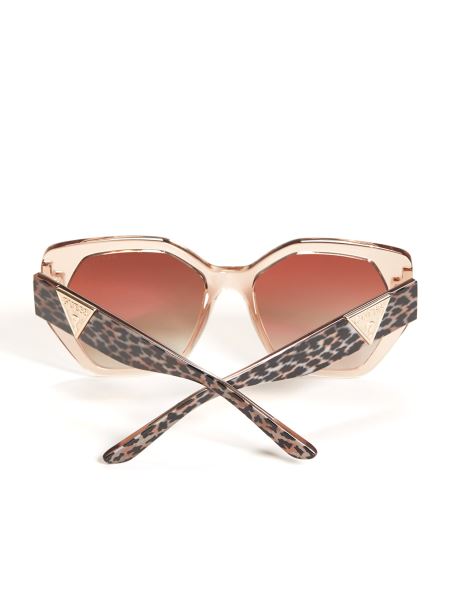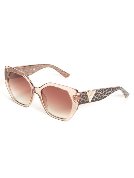 Adaugă Un Finisaj Atrăgător Look-ului Tău Cu Aceste Sunnies Geometrice, Cu Rame Din Plastic Cu Accesorii Metalice Triunghiulare La Tâmple și Lentile Degradate.