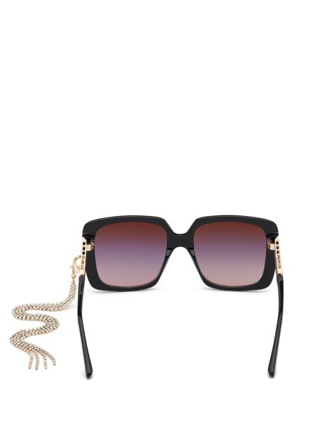 Obțineți O Doză De Glam în Acești Ochelari De Soare Pătrați, Prevăzuți Cu Accesorii Din Metal Triunghiular și Lentile Gradiente. Ciucuri Detasabil Din Strasuri Inclus.
