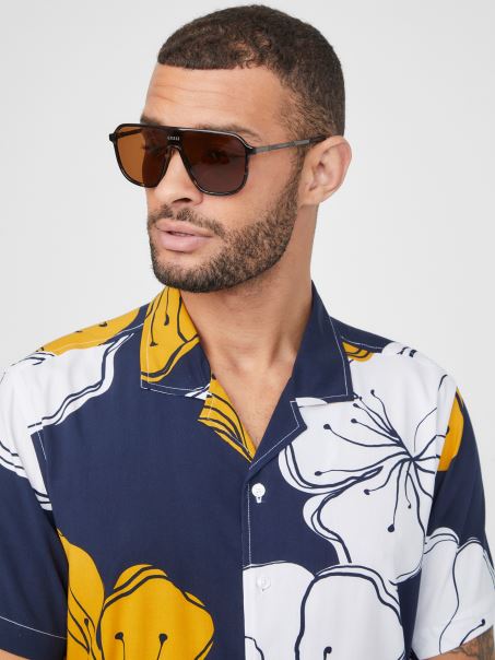 Oferă Aspectului Tău Un Finisaj Elegant în Aceste Aviatoare Care Au Un Cadru Din Plastic Cu Brațe Metalice și Detaliu Text Cu Logo.