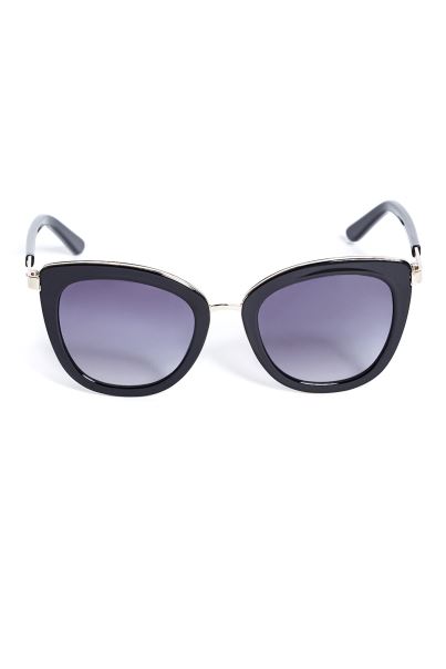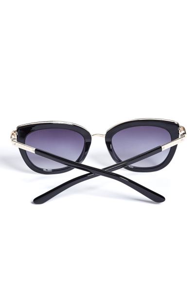 Atinge Acești Ochelari De Soare Cu Ochi De Pisică Atunci Când Te Simți Glam, Cu Ornamente Metalice și Partea Laterală Cu Logo Cu Accente De Strass.