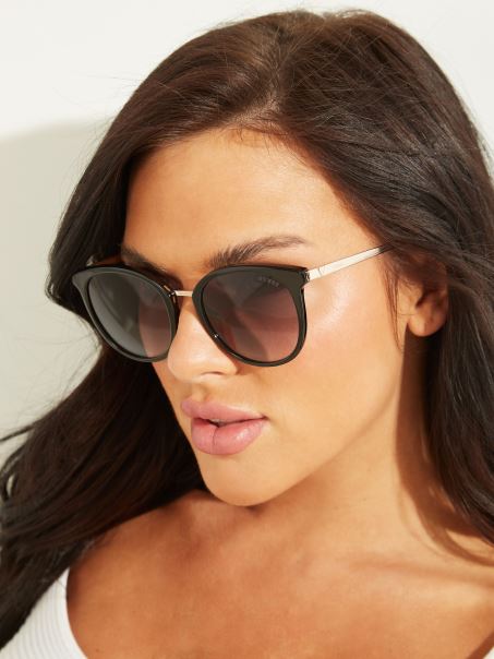 Ochelari De Soare Clasici în Stil Ochi De Pisică, Realizati Cu Rame Din Plastic, Cu Detalii Metalice Elegante La Punte și Temple Cu Detalii Cu Logo.