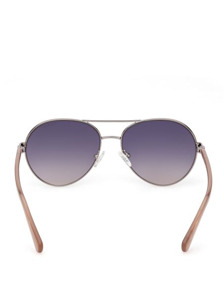 Această Pereche Elegantă De Ochelari De Soare Aviator Prezintă Rame Metalice Aurii, Lentile Colorate, O Bară Pentru Sprâncene și Logo-uri Peste Tot.