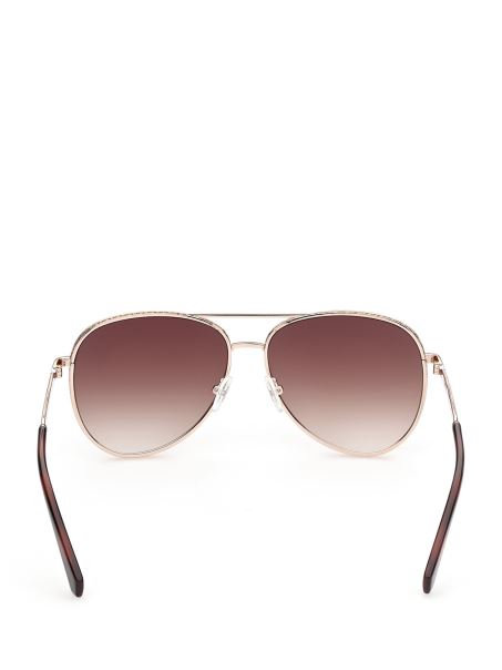 Păstrează-l Clasic în Acești Ochelari De Soare Aviator, Cu Rame Metalice Cu Model Logo, O Bară Metalică Pentru Sprâncene și Vârfuri Emailate Pentru Confort.