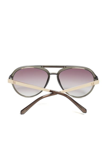 Pereche De Ochelari De Soare Aviator Cu Rame Emailate Si Detalii Cu Logo Pe Puntea Metalica, Bara De Sprancene Si Temple.
