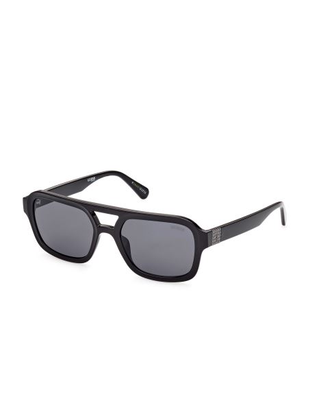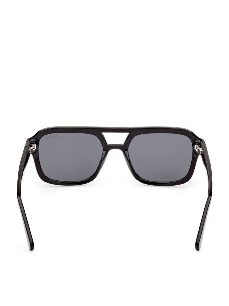 Pentru Căutarea Solului. Ochelarii De Soare Aviator Au Rame Din Plastic, O Bară Pentru Sprâncene, Lentile Colorate și Un Design Pătrat Din Strass Cu Un Logo La Tâmple.