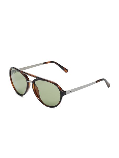 Pereche De Ochelari De Soare Aviator Cu Rame Emailate Si Detalii Cu Logo Pe Puntea Metalica, Bara De Sprancene Si Temple.
