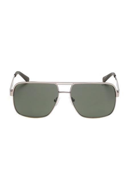 Păstrează-ți Aspectul Proaspăt Cu Această Pereche De Ochelari De Soare Navigator Cu Rame Metalice Cu Lentile Colorate, Bară De Sprânceană și Logo Lateral.