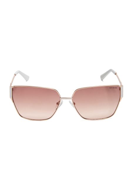 Blocante Solare Drăguțe. Acești Ochelari De Soare Pătrați Ovali Au Rame Metalice, Lentile Umbre și Temple Cu Logo.