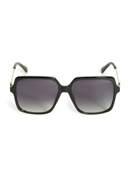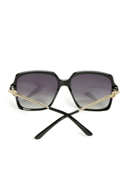 Termină-ți Aspectul Cu Acești Ochelari De Soare șic, Cu Rame Pătrate De Plastic Supradimensionate și Temple Metalice Cu Un Detaliu De Logo împodobit Cu Strasuri.