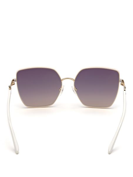 Cu Rame Fluture Moderne, Acești Ochelari De Soare Din Metal Strălucitor Au Lentile Gradiente, Ornamente Emailate și Temple Metalice Cu Accente De Logo Cu Strasuri.