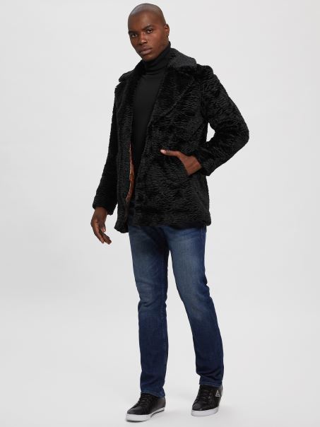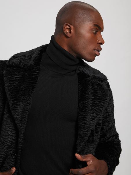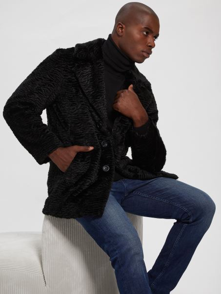 Palton De Astrakan Din Blană Artificială Guess Negru Jet