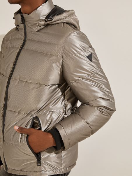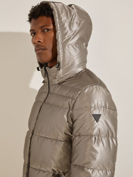 Palton Puf Elegant, Cu închidere Cu Fermoar în Față, Buzunare Cu Fermoar și Hanorac Cu închidere Cu Comutator.