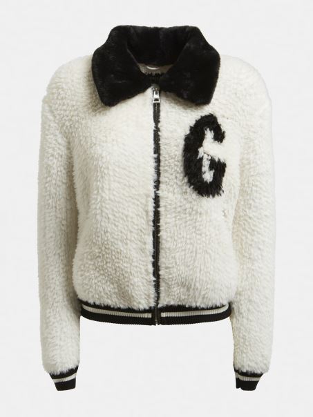 Bomber Din Blană Artificială Jacquard Alb Guess