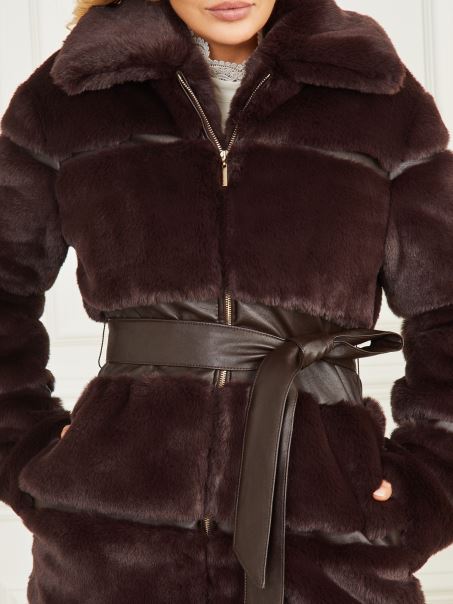 îmbrățișează Zilele Mai Friguroase Cu Această Haină De Pluș Din Blană Artificială, Inspirată De Stilurile De Puf șic, Dar îmbrățișată Cu O Potrivire Lungă, Un Guler Pliat Supradimensionat și O Curea Din Talie Din Piele Artificială. Inchidere Cu Fermoar In Fata Si Buzunare Laterale.