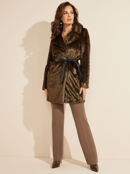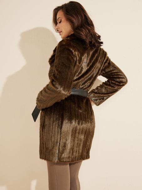 Mai Mult Decât îmbrăcămintea Exterioară, Această Haină Luxuriantă Din Blană Artificială Este O Adevărată Piesă Statement. Proiectat Cu Un Guler Pliat Crestat, închidere Cu Nasturi Ascunși în Față și O Curea Panglică Din Piele Artificială.