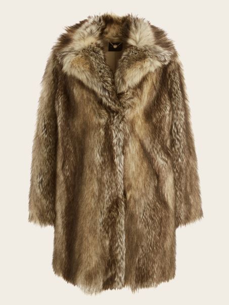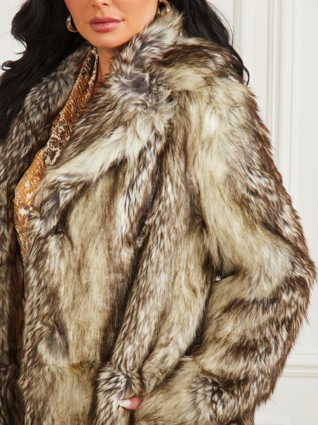 Stilul Tău De Viață Generos Are Nevoie De Această Haină Impunătoare, Confecționată Din Blană Artificială Luxoasă. Proiectat Cu Guler Larg Crestat, Buzunare Laterale, Mâneci Lungi, Căptușeală Din Satin Mătăsos și închidere Cu Cârlig în Față.