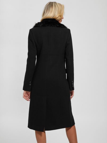 O Opțiune Sofisticată Pentru Ocaziile De Vreme Rece, Această Haină Din Twill Cu Paragate Are Un Guler Crestat și Pliat, Cu Componentă Detașabilă Din Blană Artificială și O Siluetă Cu Piept Dublu, Cu închidere Cu Nasturi în Față.